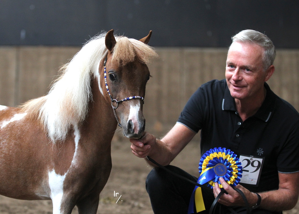 Goud 1ste premie Goedgekeurde hengst Algemeen kampioen Volwassen kampioen BRUIN PINTO 0,80m |