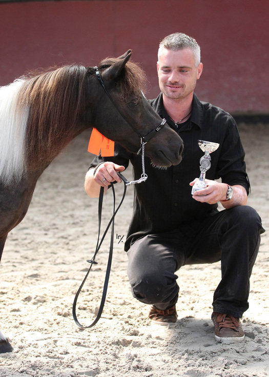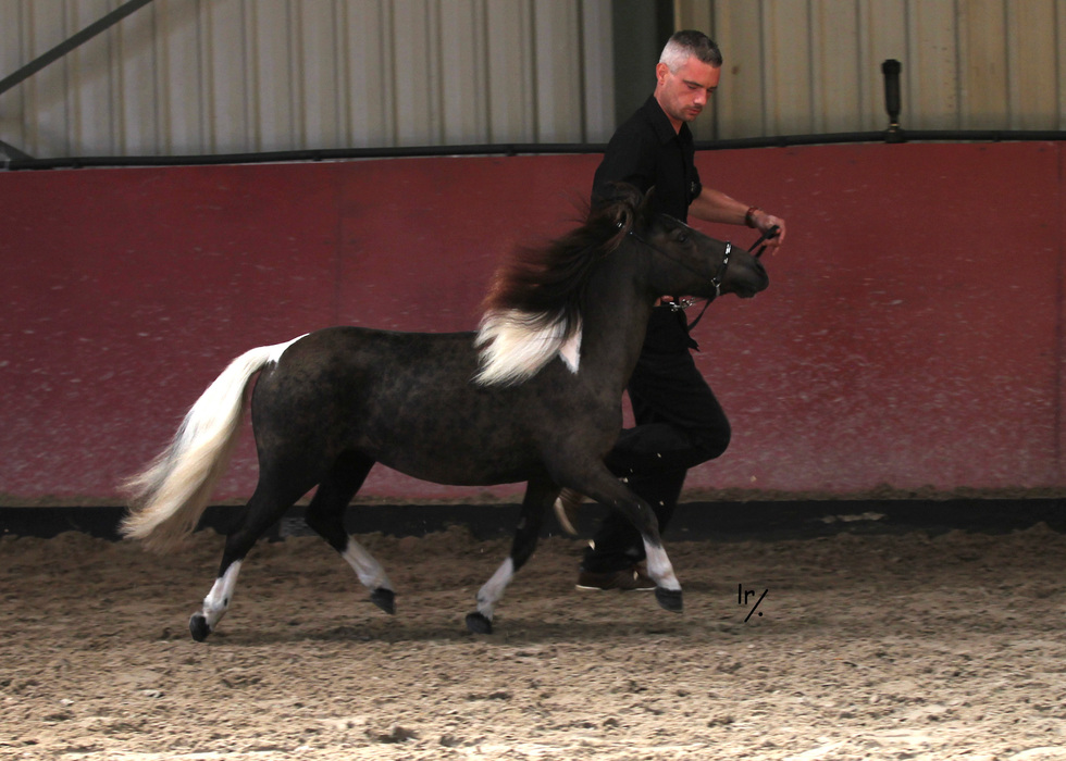 Zilver 2de premie Goedgekeurde hengst ZWART PINTO 0,86m |