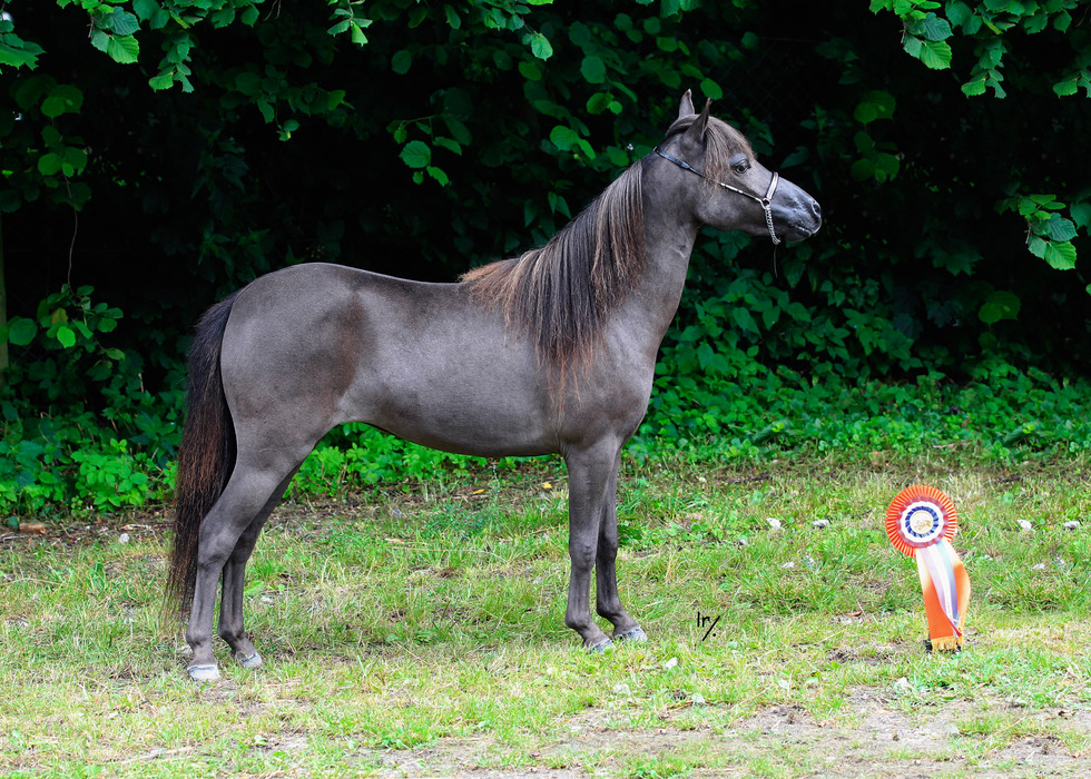 Goud 1ste premie Goedgekeurde hengst Volwassen kampioen ZWART 0,79m |