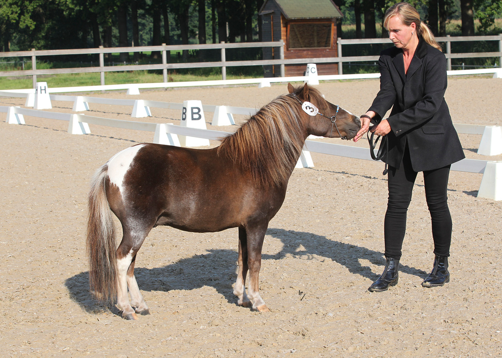 Goud 1ste premie Goedgekeurde hengst ZWART PINTO 0,84m |