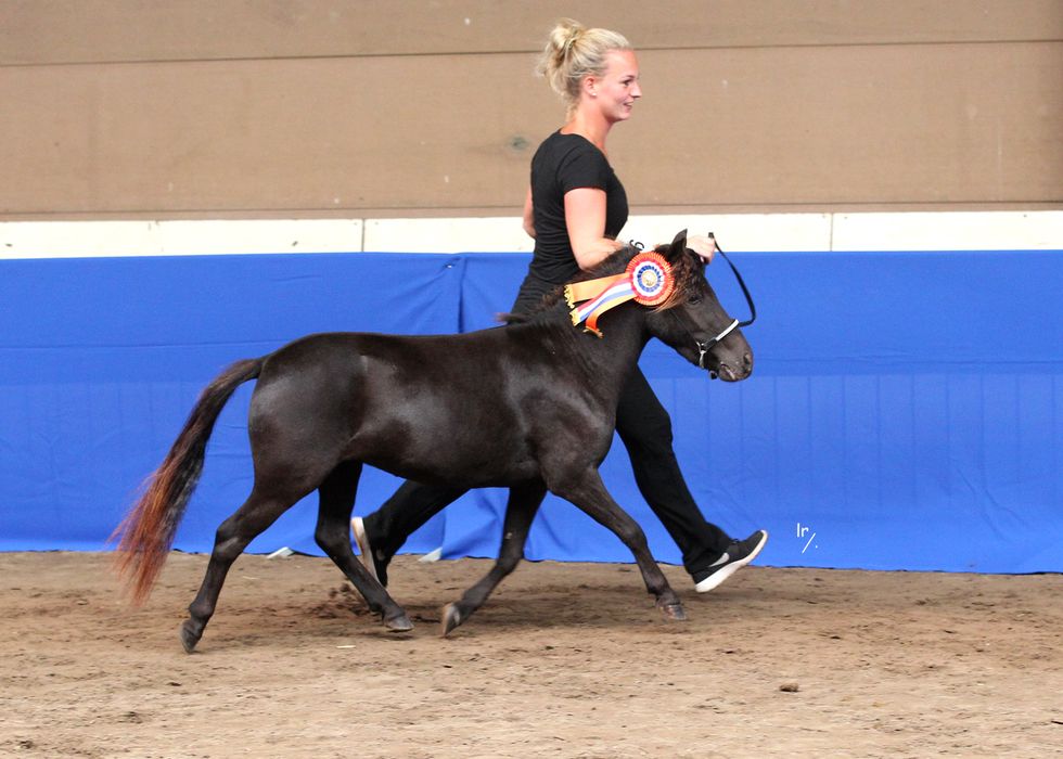 Goud 1ste premie Zilver 2de premie Goedgekeurde hengst ZWART PINTO 0,86m |