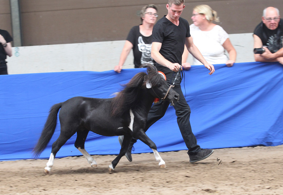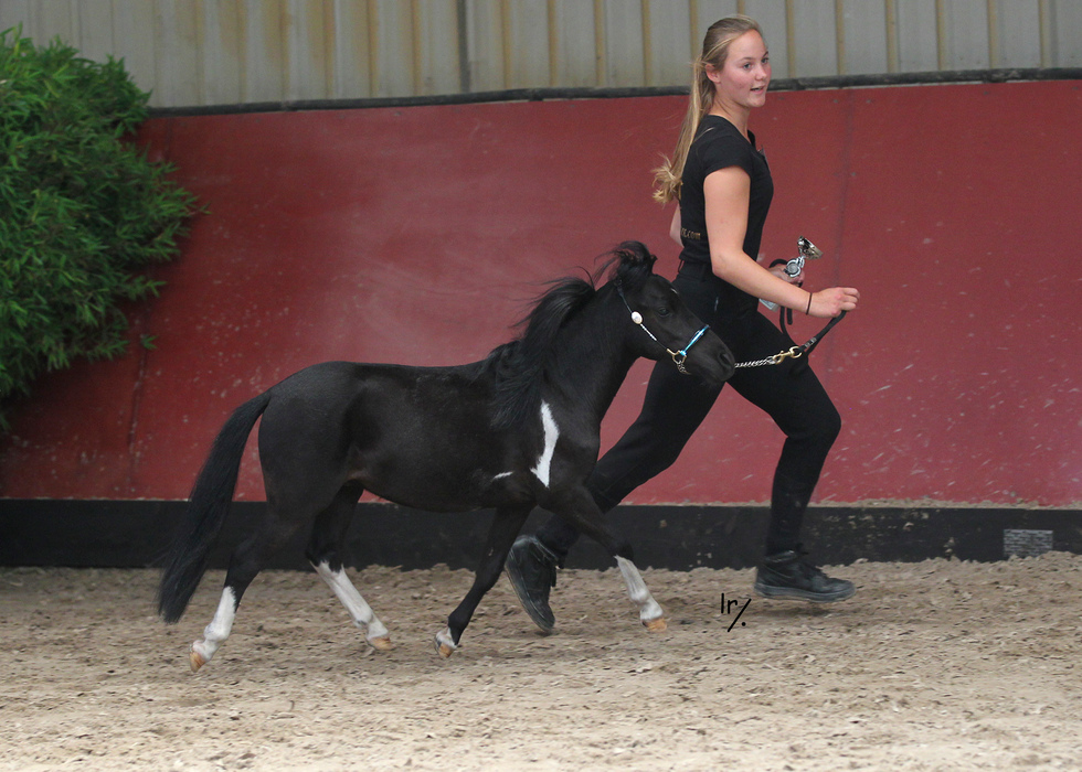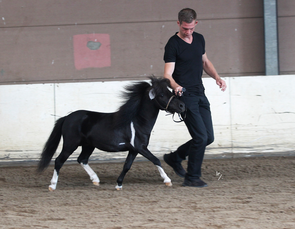 Zilver 2de premie Goedgekeurde hengst ZWART PINTO 0,86m |