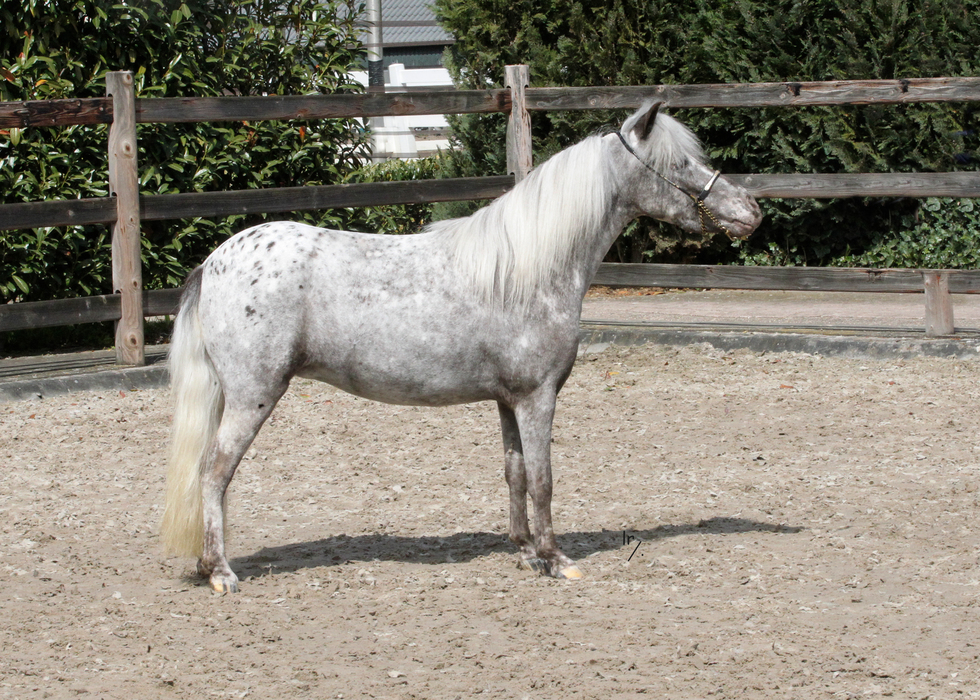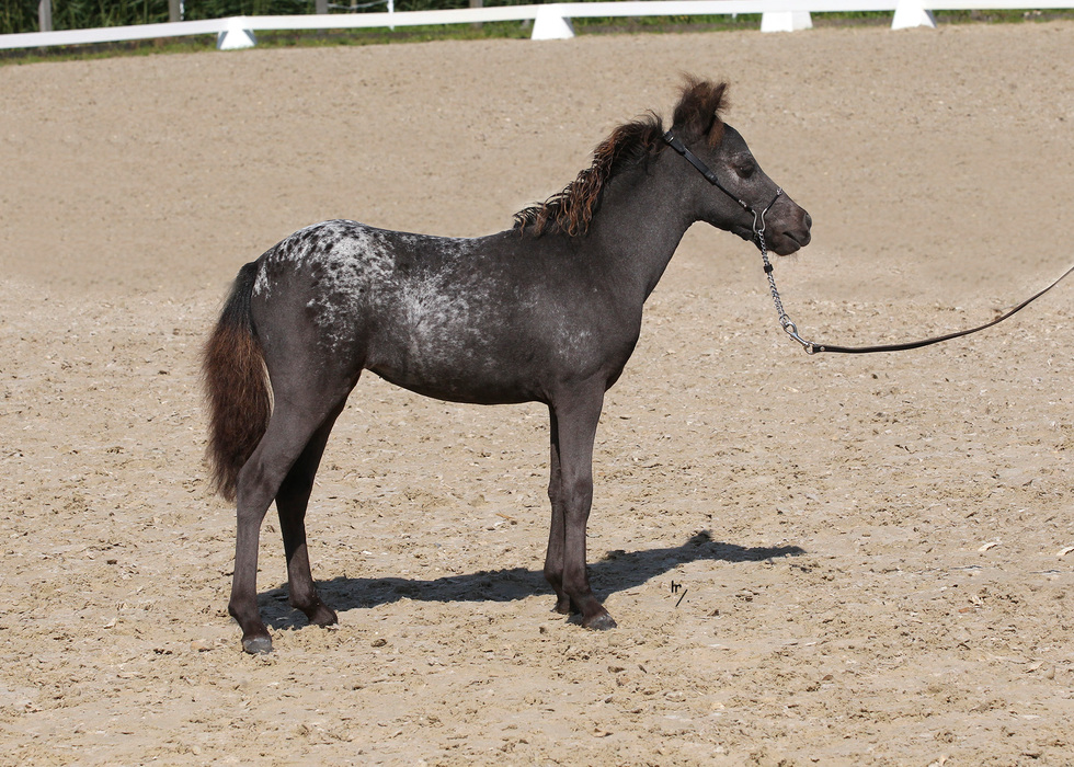 Goud 1ste premie Goud 1ste premie twenter Zilver 2de premie Goedgekeurde hengst Nakomelingen kampioen ZWART APPALOOSA 0,88m |