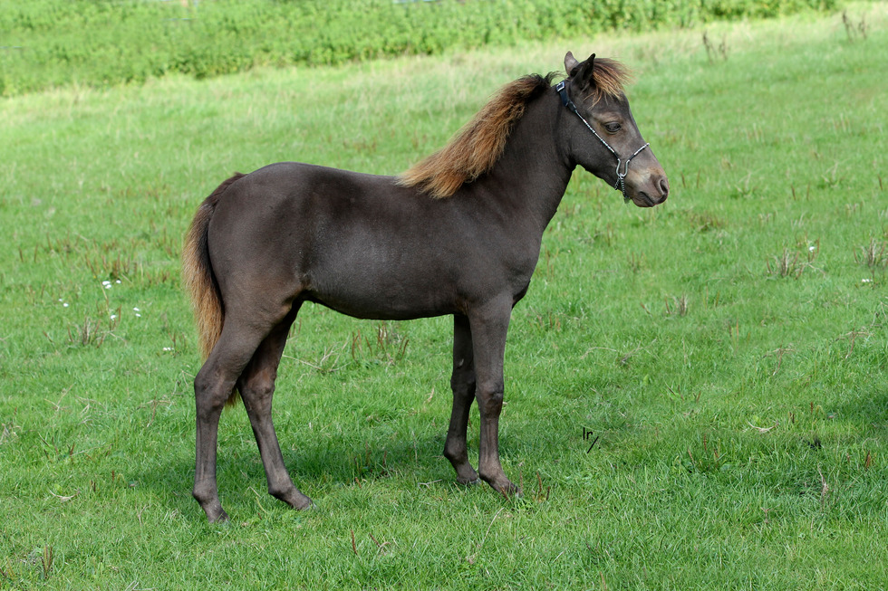 Goud 1ste premie Goedgekeurde hengst ZWART PINTO 0,85m |