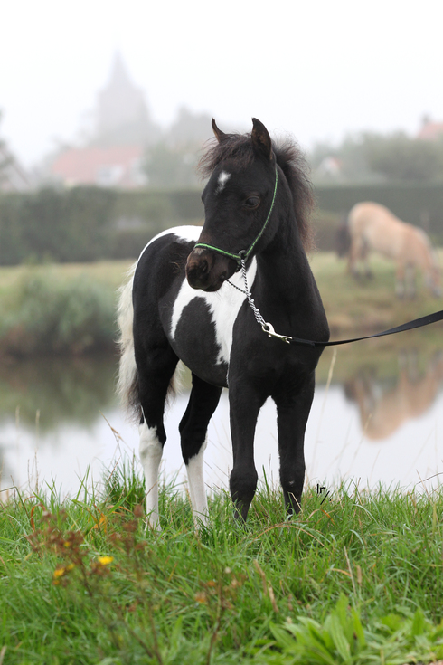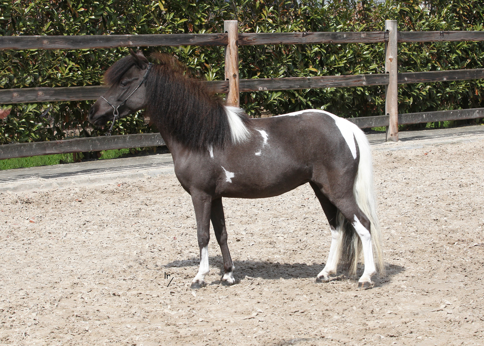 Goud 1ste premie Zilver 2de premie Goedgekeurde hengst ZWART PINTO 0,87m |